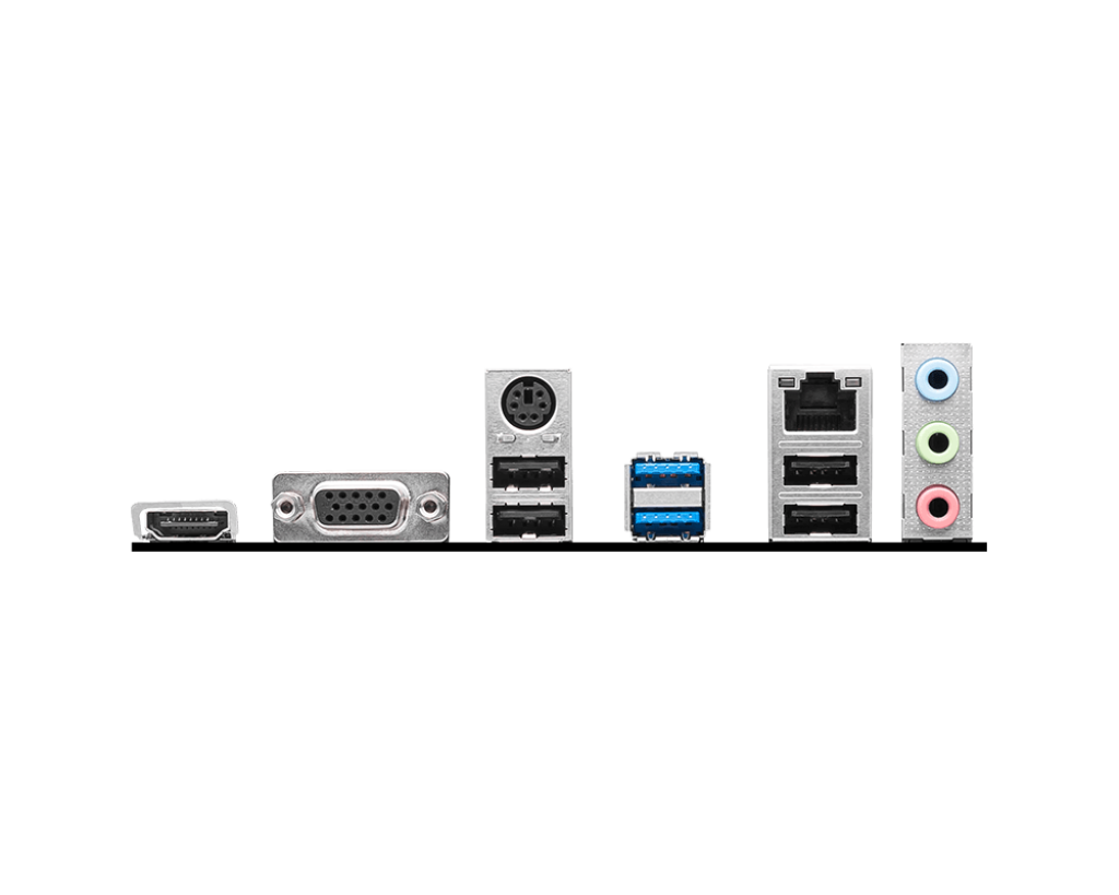 - Разъемы на задней панели HDMI, LAN RJ-45, PS/2 (клавиатура/мышь), USB 2.0 Type-A x 4, USB 3.2 Gen1 Type-A x 2, VGA, HDMI, LAN RJ-45, PS/2 (клавиатура/мышь), USB 2.0 Type-A x 4, USB 3.2 Gen1 Type-A x 2, VGA